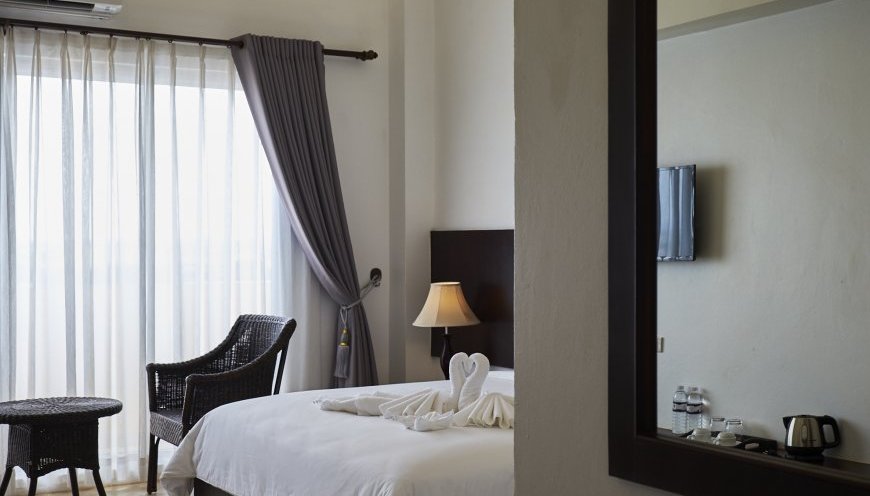 We provide 6 rooms of this category with the same range of amenities but in a wider space and a comfortable balcony, a bigger flat cable-TV with more than 50 channels , and the best astonishing view on Vientiane.